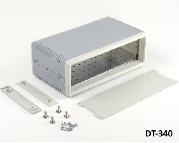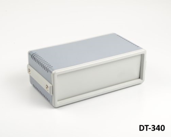 Mierząca 288 mm x 163 mm x 105 mm obudowa DT-340 jest kompaktowa, a jednocześnie wytrzymała. Jasnoszary kolor zapewnia elegancki i profesjonalny wygląd. Połączenie zastosowanych materiałów zapewnia odporność na uderzenia i ciepło, dzięki czemu nadaje się do użytku w różnych środowiskach. Blacha zapewnia również dodatkowe właściwości ekranujące dla wrażliwych komponentów elektronicznych.
