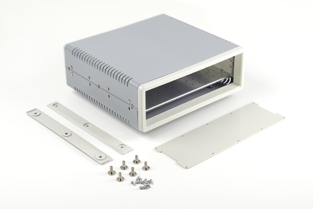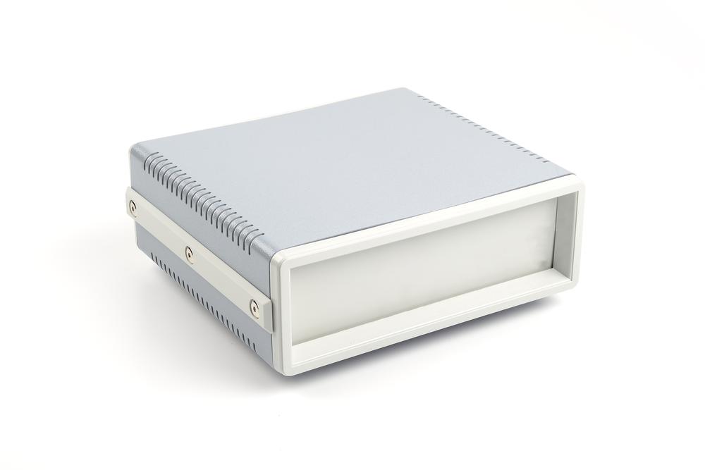 Obudowa DT-345 Desktop Enclosure to wszechstronne, trwałe i odporne na uderzenia rozwiązanie do różnych zastosowań biurkowych, w tym urządzeń medycznych, wykonane z połączenia ABS-UL94-HB i materiałów metalowych.