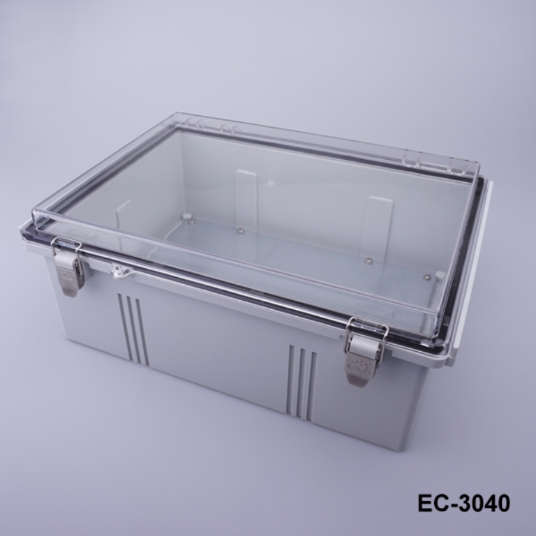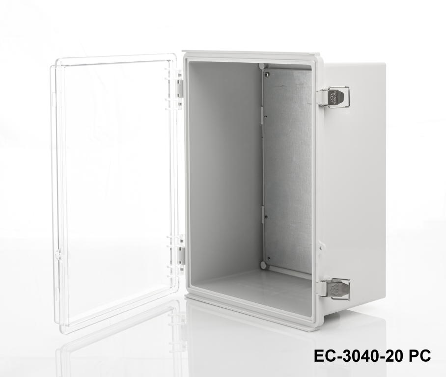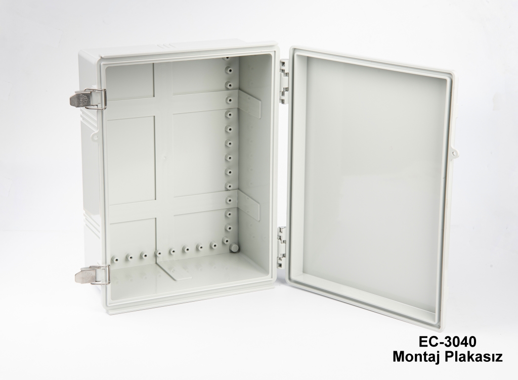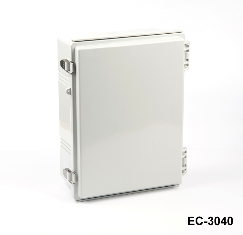 8698651439267EC-3040 to plastikowa obudowa na zawiasach z certyfikatem IP67. Dostępna jest w 2 różnych rozmiarach: 300 x 400 x 159 i 300 x 400 x 200. Obudowy te mogą być używane na zewnątrz do różnych zastosowań elektrycznych. Uszczelka TPE zapewnia odporność na wodę i kurz. Materiałem wyjściowym dla tego produktu jest odporny na wstrząsy ABS. ASA to kolejna zalecana opcja do ciężkich zastosowań. Inną opcjonalną opcją jest przezroczysta pokrywa z materiału PC (poliwęglan). Płyta montażowa z galwanizowanej stali o grubości 1 mm zapewnia łatwy montaż Państwa komponentów wewnątrz obudowy. Obudowy są dobrze zabezpieczone zatrzaskami ze stali nierdzewnej. Inne opcjonalne powiązane akcesoria to aluminiowe i plastikowe zestawy do montażu na ścianie, zestaw do montażu na słupie, zestaw drzwi wewnętrznych. Obróbka CNC i nadruki UV są dostępne tak jak w przypadku wszystkich produktów Altinkaya.