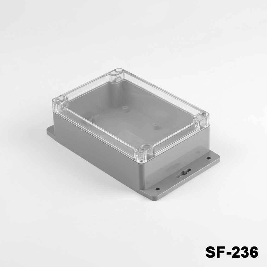 SF-236 to kołnierzowa obudowa do dużych obciążeń z certyfikatem IP67. Wodoodporność i pyłoszczelność pozwalają na użytkowanie w zastosowaniach zewnętrznych. Kołnierze z otworami na śruby zapewniają łatwy montaż do ściany. Dla tego produktu dostępna jest personalizacja poprzez obróbkę CNC, druk UV i znakowanie laserowe. Produkt jest wykonany z materiału ABS. Przezroczysta pokrywa z materiału PC jest dostępną opcją.