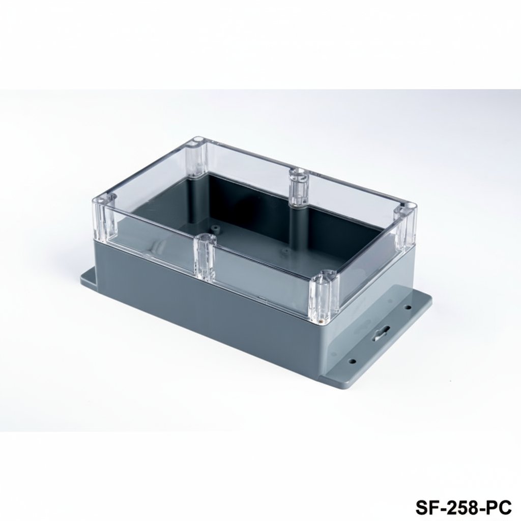 8698651321074SF-258 to kołnierzowa obudowa do dużych obciążeń z certyfikatem IP67. Wodoodporność i pyłoszczelność pozwalają na użytkowanie w zastosowaniach zewnętrznych. Kołnierze z otworami na śruby zapewniają łatwy montaż do ściany. Dla tego produktu dostępna jest personalizacja poprzez obróbkę CNC, druk UV i znakowanie laserowe. Produkt jest wykonany z materiału ABS. Przezroczysta pokrywa z materiału PC jest dostępną opcją.