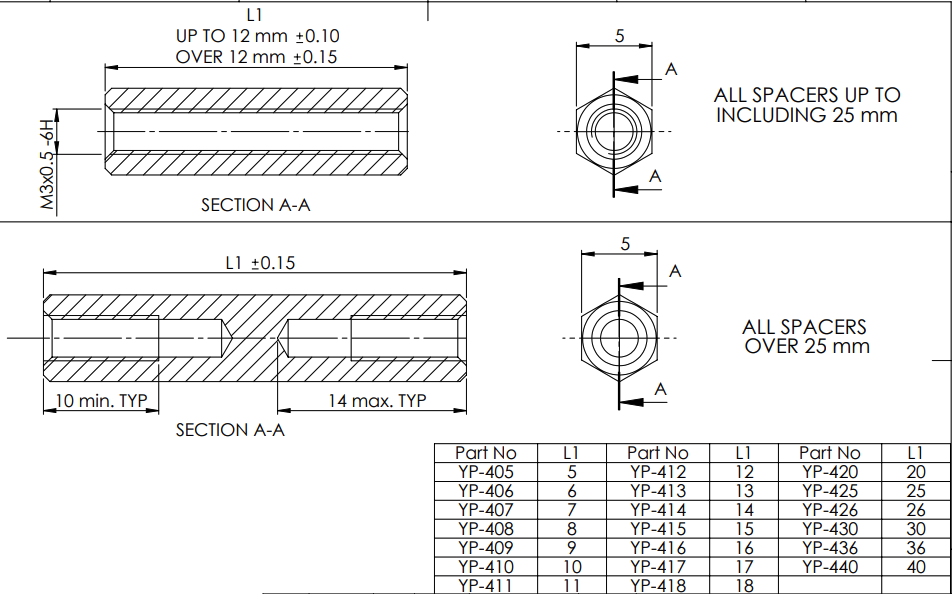 YP-400 Mosiężny łącznik sześciokątny - żeński M3 × żeński M3