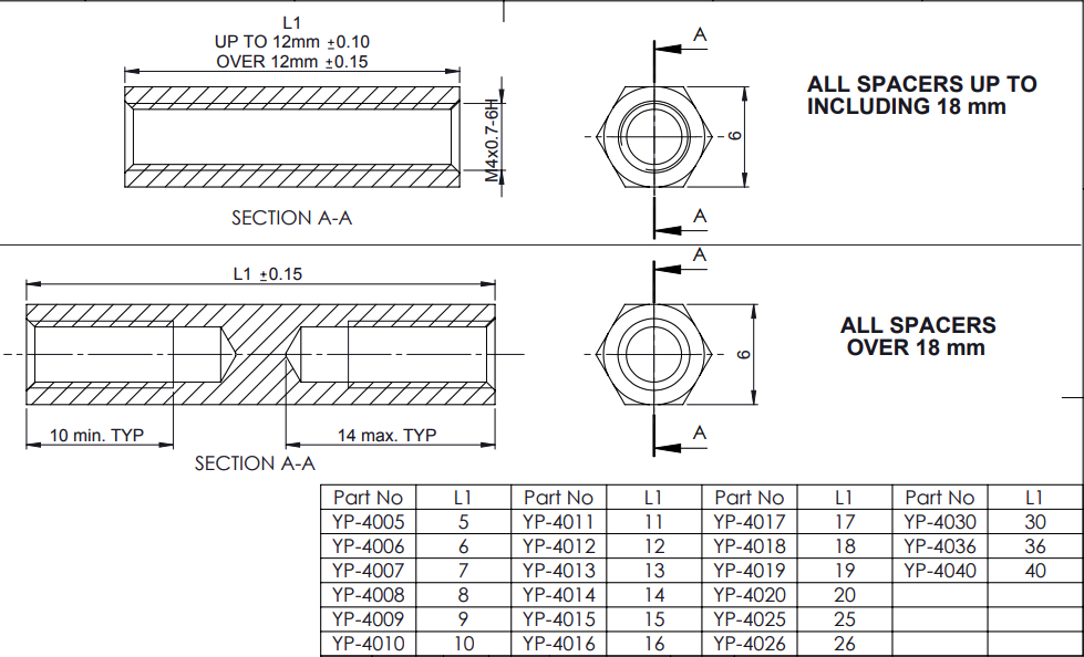 [YP-4030-0-0-M-0] 6 x 6 x 5 - 40 mm (0.24 x 0.24 x 0.2 in)