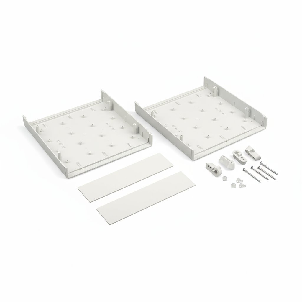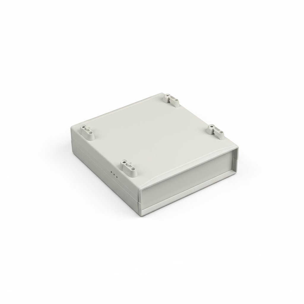 A caixa de plástico de secretária DT-310 é uma caixa em ABS versátil, resistente ao impacto e ao calor, perfeita para uma variedade de aplicações de secretária, com um design compacto e disponível em cinzento claro.