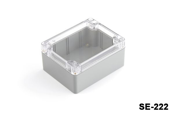 A caixa de plástico resistente SE-222 IP67 é uma caixa durável e versátil, adequada para uma variedade de aplicações que requerem proteção à prova de água e de poeiras. Fabricado com materiais ABS, PC e PC/ABS de alta qualidade, este invólucro apresenta-se numa elegante cor cinzenta escura com uma tampa transparente. Com a sua classificação IP67, esta caixa oferece proteção contra água e poeiras, tornando-a ideal para utilização no exterior.