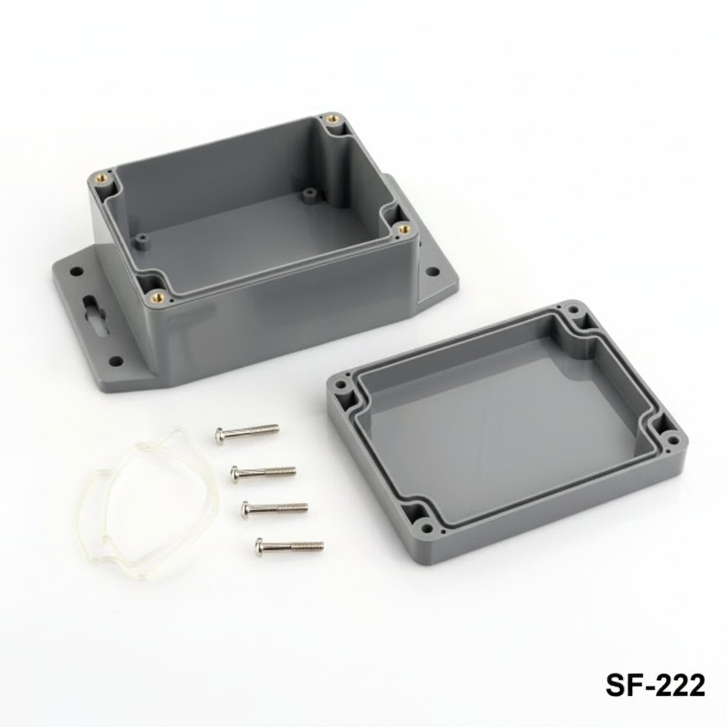 O SF-222 é um invólucro flangeado para trabalhos pesados com certificado IP67. As características à prova de água e de poeiras permitem a utilização em aplicações no exterior. As flanges com orifícios para parafusos proporcionam-lhe uma montagem fácil na parede. Pode personalizar este produto através de maquinagem CNC, impressão UV e marcação a laser. O produto é produzido com material ABS. A tampa transparente em material PC é uma opção disponível.
