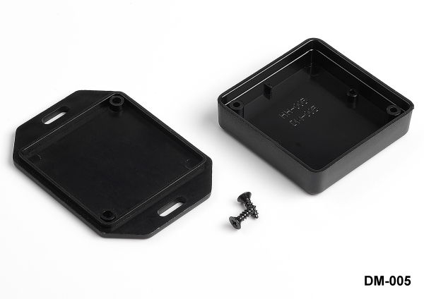 DM-005 Duvara Montaj Muhafazası, 50 mm x 67,5 mm x 15 mm boyutlarında dayanıklı ABS-UL94- HB malzemeden yapılmış elektronik cihazları barındırmak için çok yönlü ve güvenilir bir çözümdür.