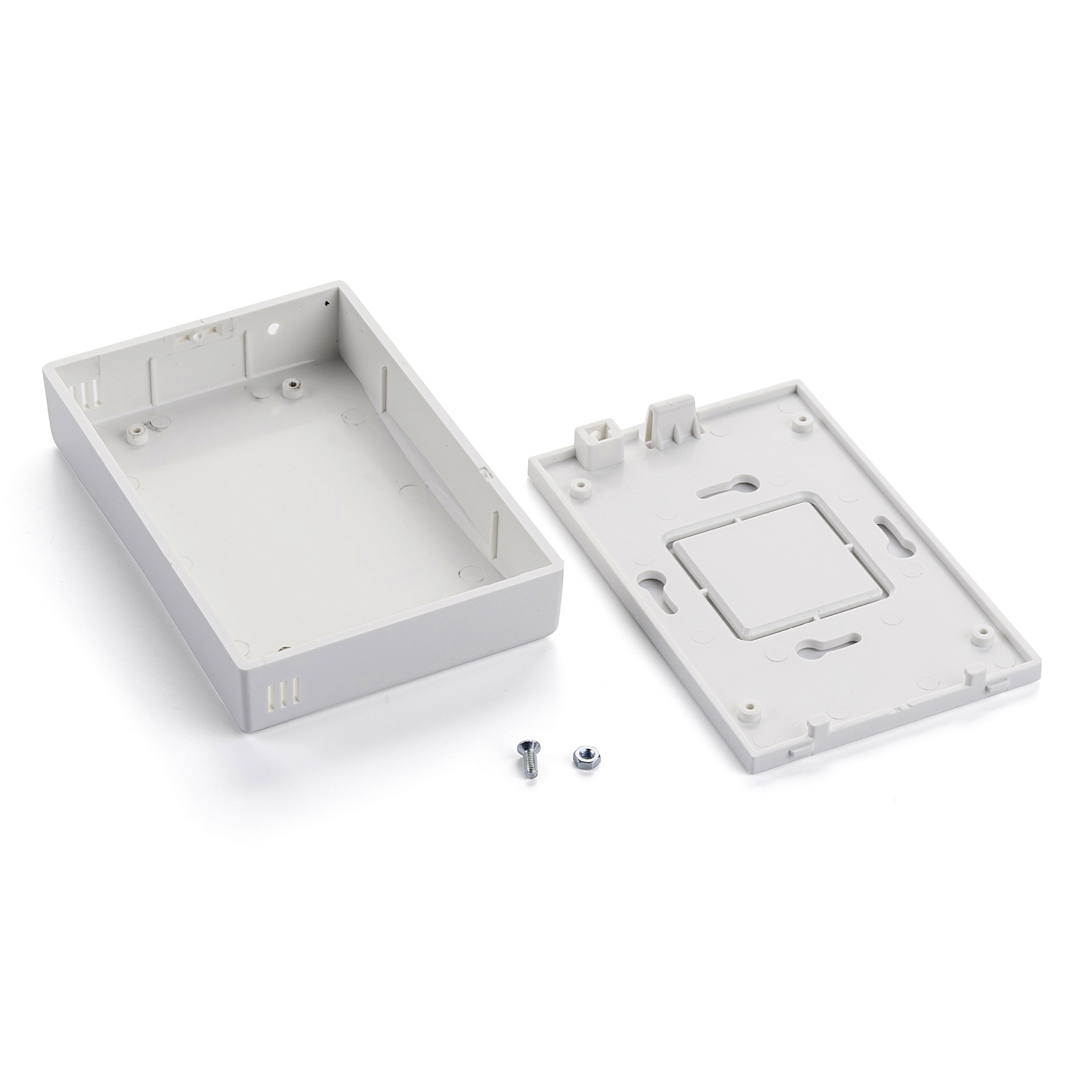 DM-8012 Duvar Tipi Kutu, 120 mm x 80 mm x 23 mm boyutlarında dayanıklı ABS-UL94-V0 malzemeden yapılmış elektronik cihazların muhafazası için çok yönlü ve güvenilir bir çözümdür.