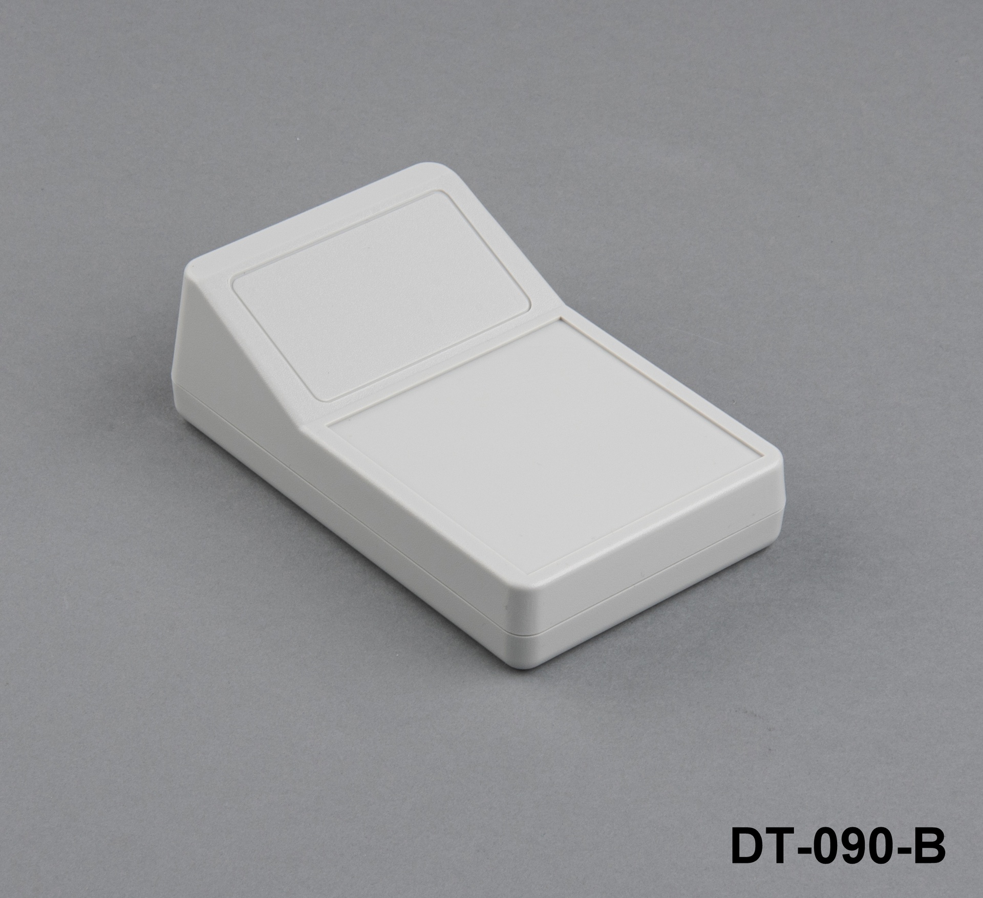 Наклонный настольный корпус DT-065 - это элегантный и профессиональный вариант для электронных устройств, изготовленный из материала ABS-UL94-HB, с размерами 150 мм x 95 мм x 49,5 мм и наклонной передней панелью.