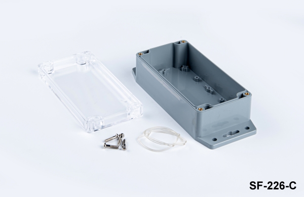 SF-226 - это фланцевый корпус для тяжелых условий эксплуатации с сертификатом IP67. Водонепроницаемость и пылезащищенность позволяют использовать его на открытом воздухе. Фланцы с отверстиями для винтов обеспечивают легкое крепление к стене. Для этого изделия доступна персонализация с помощью обработки на ЧПУ, УФ-печати и лазерной маркировки. Для изготовления изделия используется материал ABS. Прозрачная крышка из материала PC - дополнительная опция.