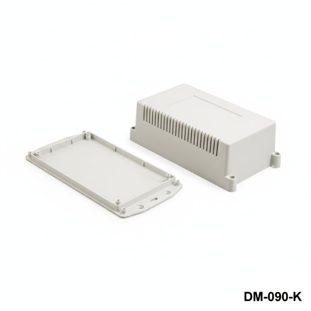 The DM-090 Wall Mount Enclosure is a versatile and reliable solution for housing electronic devices, made of durable ABS-UL94-HB material with dimensions of 185 mm x 89 mm x 58 mm.