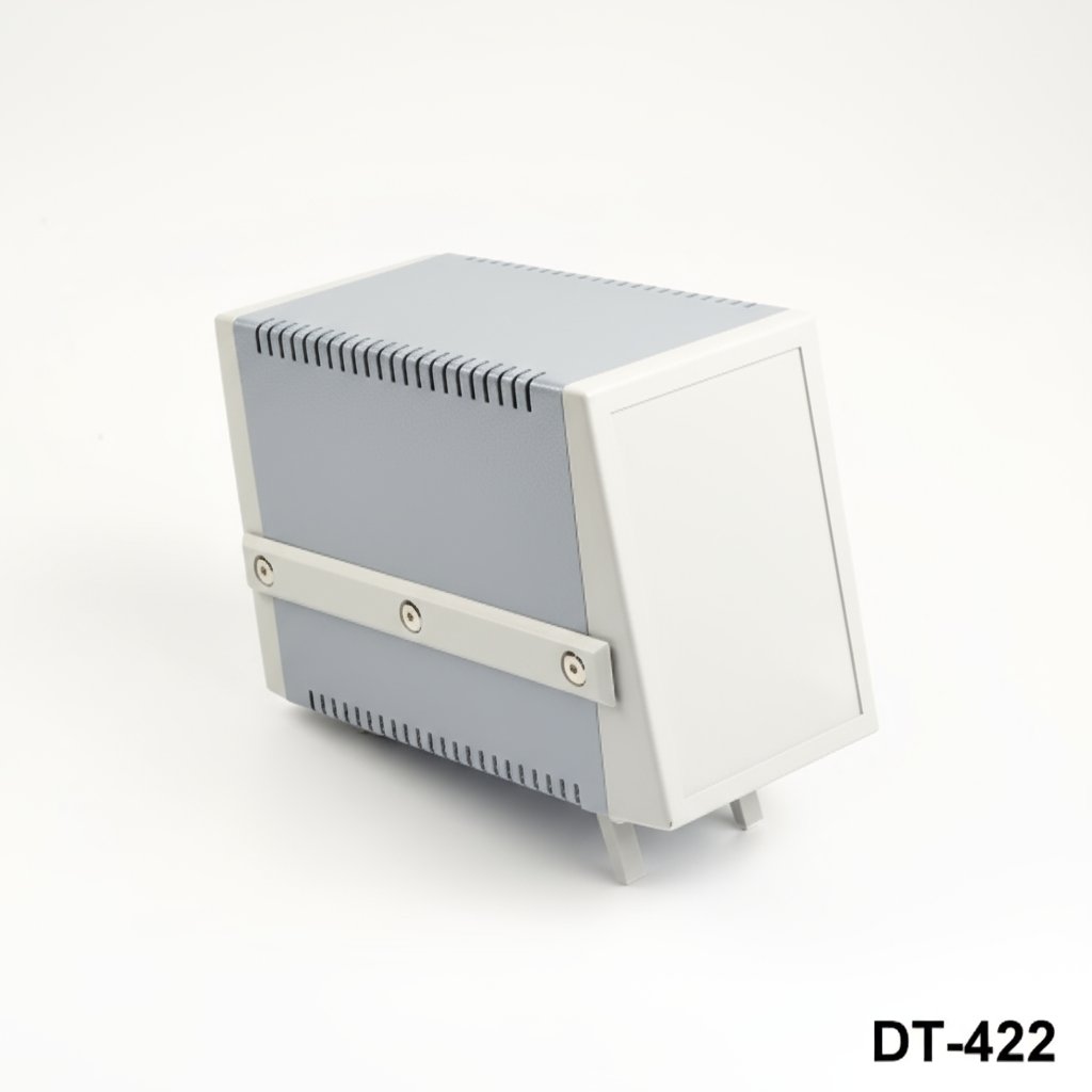 The DT-422 Sloped Instrument Enclosure is a durable and impact-resistant solution for instrument and control applications, constructed from a combination of ABS-UL94-HB and sheet metal materials, with a sloped design for easy viewing and access to the electronic components.