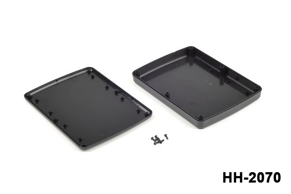 The HH-2070 Tablet Enclosure is a versatile enclosure suitable for a variety of applications, including tablets, display screens, control panels, testing and measurement, and smart building systems. The enclosure is made from high-quality ABS UL-HB material, providing both durability and flexibility. With its standard light gray or black color options and compact size, this enclosure can easily blend in with various design styles.