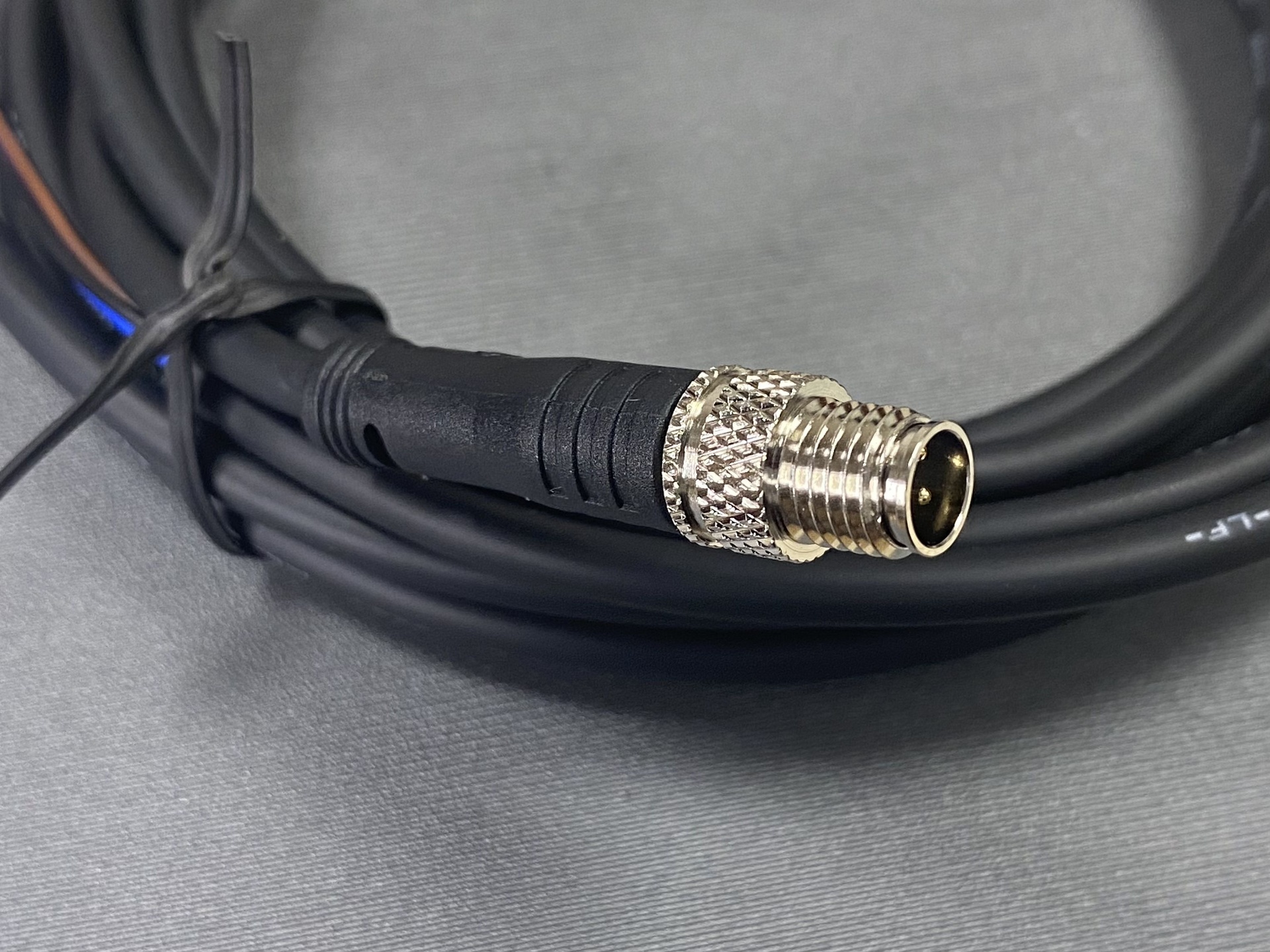 3 pin plug type male connector with M8 cable. Aluminum alloy pin length is 3 mm. IP-67 class waterproof.