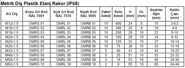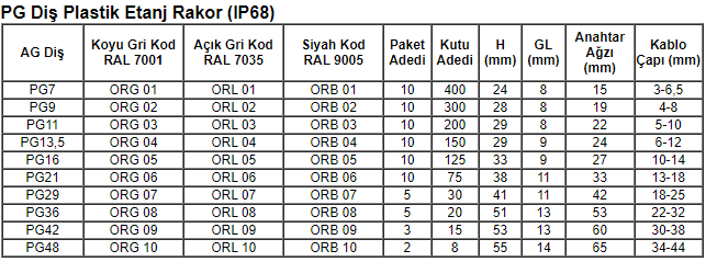 | Thread Size | PG7, PG9, PG11, PG13,5, PG16, PG21, PG29, PG36, PG42, PG48, M12x1,5, M16x1,5, M20x1,5, M25x1,5, M32x1,5, M40x1,5, M50x1,5, M63x1,5, M16x1,5-B, M20x1,5-B |