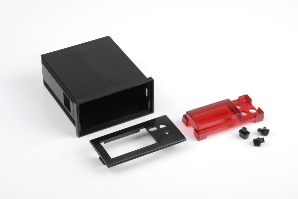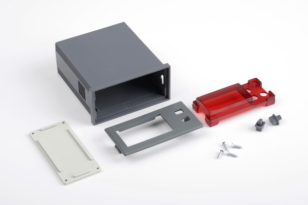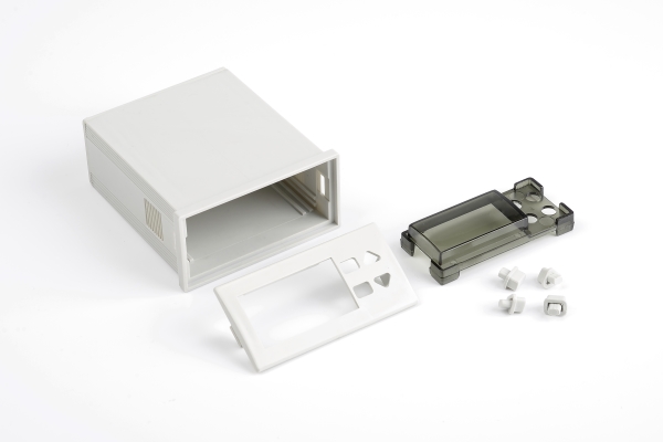 The PT-120-24 DIN panel enclosure is constructed from high-quality ABS plastic and measures 36 mm x 72 mm x 85 mm. Available in light gray or black, it features a body, panel, and side clamps for easy mounting. For customization options or quantity details, please contact our International Sales team.