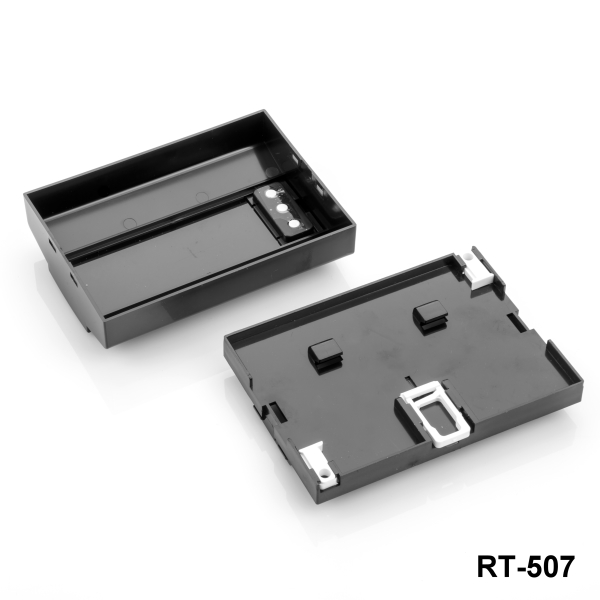 Our RT-507 Din Rail Enclosure is a versatile and practical solution for electrical and electronic devices. With a light gray or black color option, this enclosure is made of high-quality UL94-V0 material and has dimensions of 126 mm x 91 mm x 44.7 mm. The transparent, smokey and light grey panel colors offer customization options and the panel design can be customized to meet your specific needs.