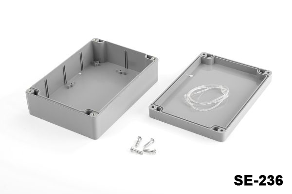 8698651112245SE-236 is a heavy duty enclosure with IP67 certificate. Waterproof and dustproof features allow usage in outdoor applications. Customization by CNC machining, UV printing and laser marking is available for this product. The product is produced with ABS material. Clear lid with PC material is an available option.