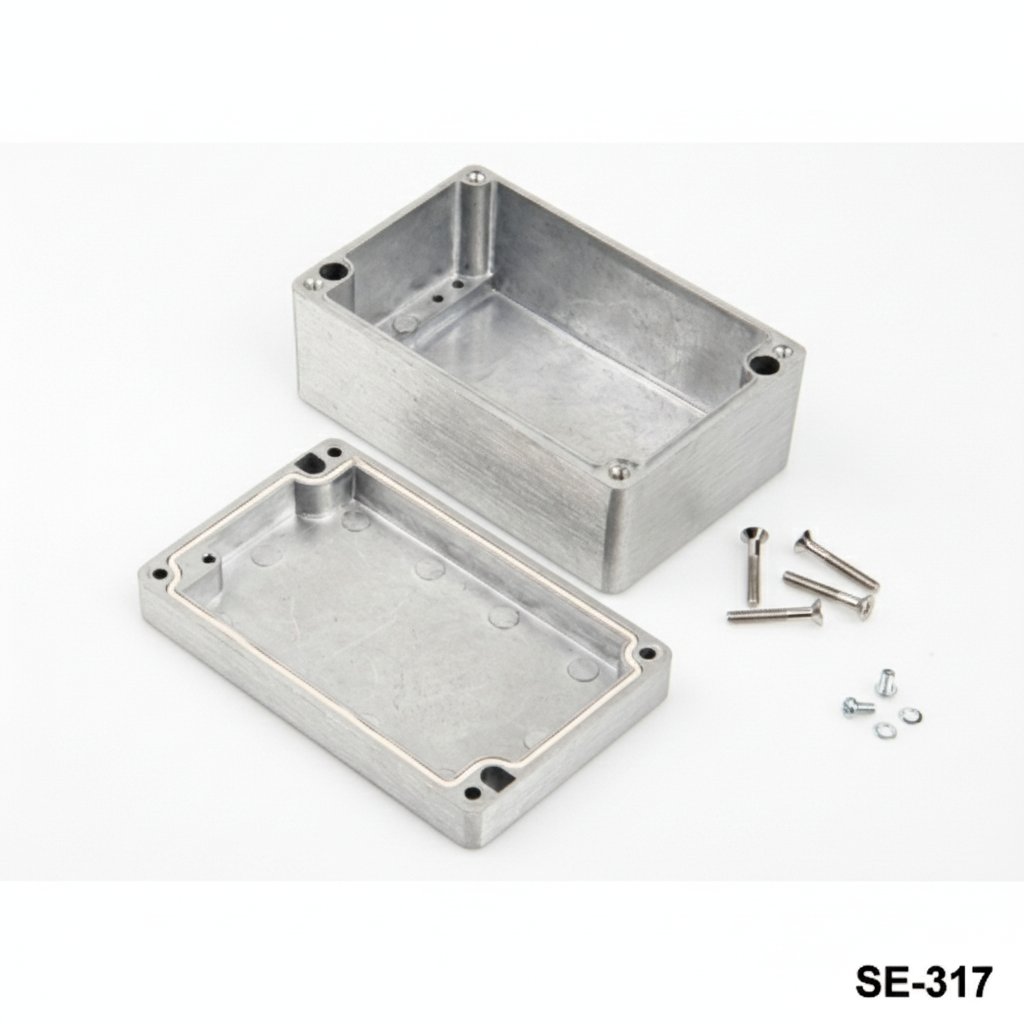 The SE-317 IP67 Sealed Aluminum Enclosure is designed for demanding applications requiring protection against dust and water. Made from durable diecast material, this enclosure measures 125 mm x 80 mm x 57 mm and comes in a natural aluminum finish. For customers who need a specific color, the enclosure can be powder-coated in any color based on the quantity. For more information on customization options and quantity details, please contact our International Sales team.