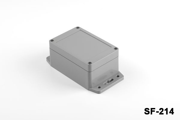 SF-214 is a flanged heavy duty enclosure with IP67 certificate. Waterproof and dustproof features allow usage in outdoor applications. Flanges with screw holes provide you an easy assembly to the wall. Customization by CNC machining, UV printing and laser marking is available for this product. The product is produced with ABS material. Clear lid with PC material is an available option.