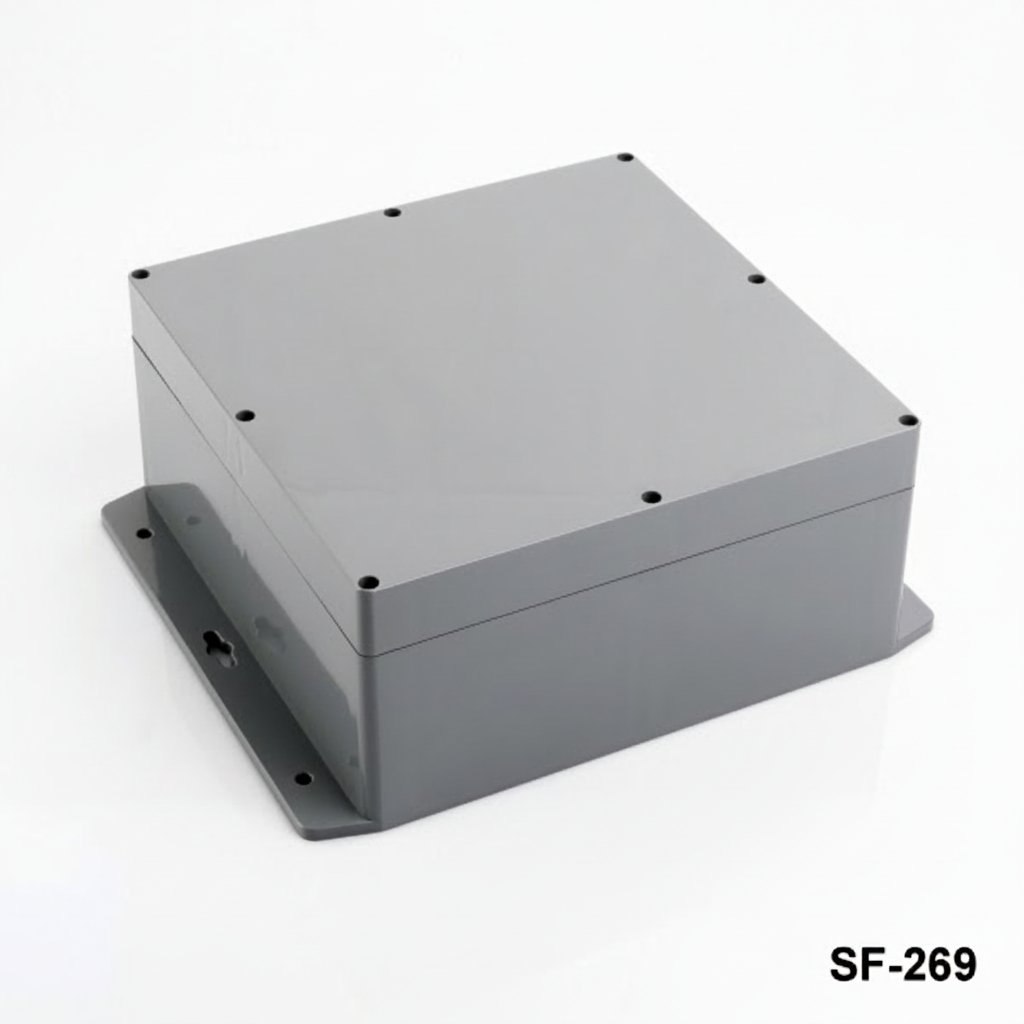 Flanges facilitate mounting on surfaces. It is an ideal choice for embedded systems, transmitters, barometers, gas and humidity sensors, temperature control and measurement applications that require a high level of protection. For outdoor applications, production with ASA material resistant to sun exposure is also possible.