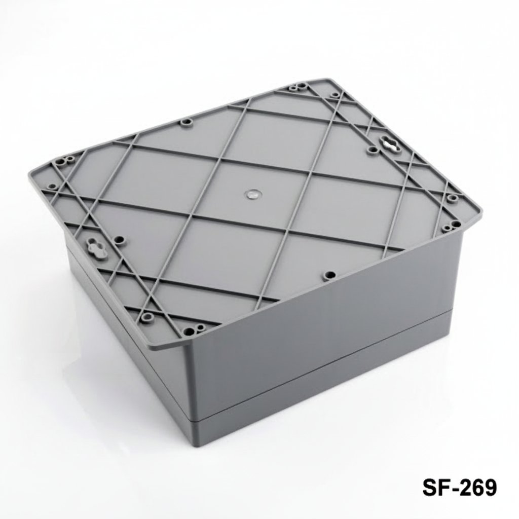 SF-269 is a flanged heavy duty enclosure with IP67 certificate. Waterproof and dustproof features allow usage in outdoor applications. Flanges with screw holes provide you an easy assembly to the wall. Customization by CNC machining, UV printing and laser marking is available for this product. The product is produced with ABS material. Clear lid with PC material is an available option.
