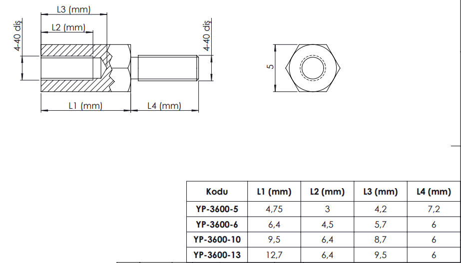 YP-3600 Brass Hex Standoff – Male 4-40 UNC × Female 4-40 UNC