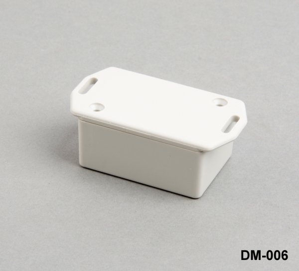 DM-006 Duvar Tipi Kutu, 35 mm x 65 mm x 24 mm boyutlarında dayanıklı ABS-UL94- HB malzemeden yapılmış elektronik cihazları barındırmak için çok yönlü ve güvenilir bir çözümdür.