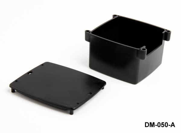 DM-050 Duvar Tipi Kutu, 116 mm x 96 mm x 65 mm boyutlarında dayanıklı ABS-UL94-HB malzemeden yapılmış, elektronik cihazların muhafazası için çok yönlü ve güvenilir bir çözümdür.