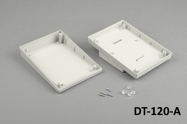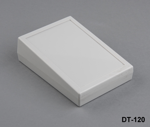 DT-120 Eğimli Masaüstü Muhafazası, ABS-UL94-HB malzemeden ve eğimli ön panelden yapılmış elektronik uygulamalar için şık ve profesyonel bir seçenektir.