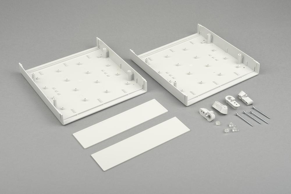 DT-310 Plastik Masaüstü Muhafazası, kompakt tasarımı ve açık gri rengiyle çeşitli masaüstü uygulamaları için mükemmel olan, çok yönlü, darbeye ve ısıya dayanıklı bir ABS muhafazadır.