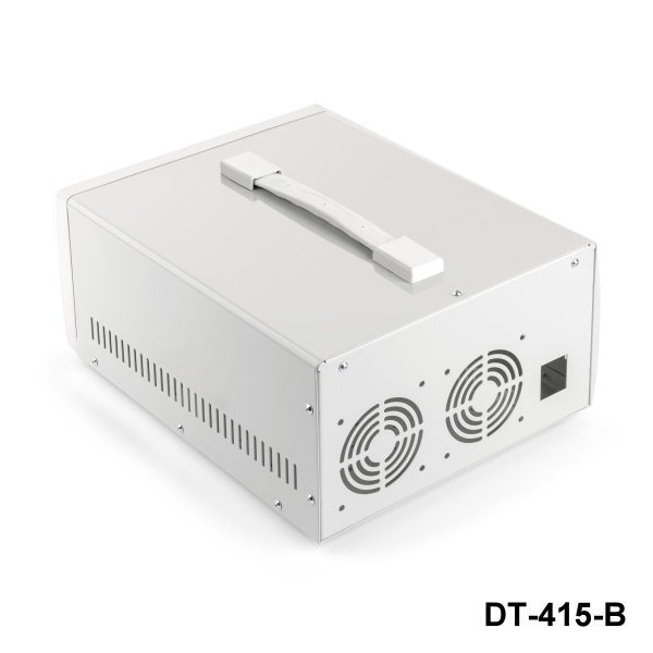 DT-415 Güç Kaynağı Muhafazası, güç kaynağı uygulamaları için ABS-UL94-HB ve sac metal malzemelerin kombinasyonundan yapılmış dayanıklı ve darbeye dayanıklı bir çözümdür.