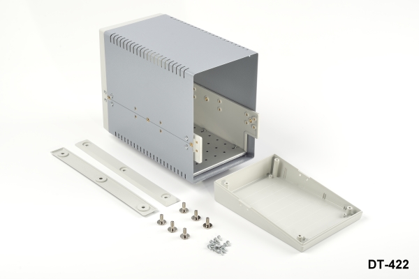DT-422 Eğimli Alet Muhafazası, elektronik bileşenlere kolay görüntüleme ve erişim için eğimli bir tasarıma sahip, ABS-UL94-HB ve metal levha malzemelerin birleşiminden yapılmış, alet ve kontrol uygulamaları için dayanıklı ve darbeye dayanıklı bir çözümdür.