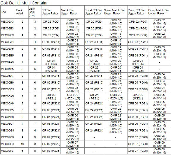 Rakor Boyu PG9-M16K, PG11-M16, PG13,5-M20K, PG16-M20, PG21-M25, PG29-M32, PG36-M40