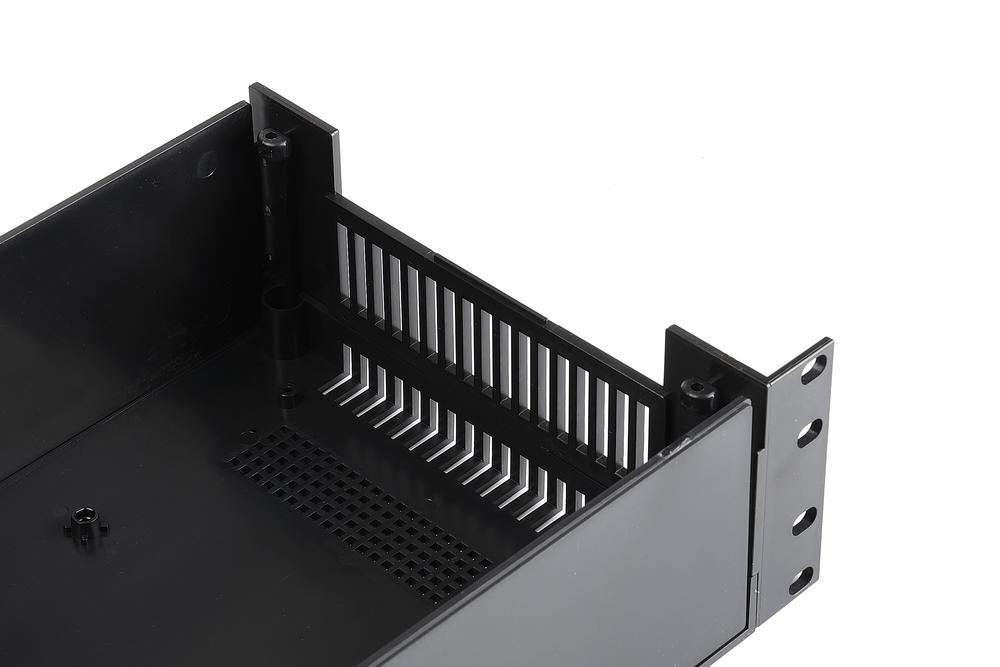 RM-202 Plastik Rack Tipi Kutu, sunucuların monte edildiği rack kabinlerde kullanılan plastik bir muhafazadır. 2U ölçülere göre üretilmiştir. Kullanılan malzeme ABS-UL94-V0'dır. Bu kutunun rengi siyahtır.