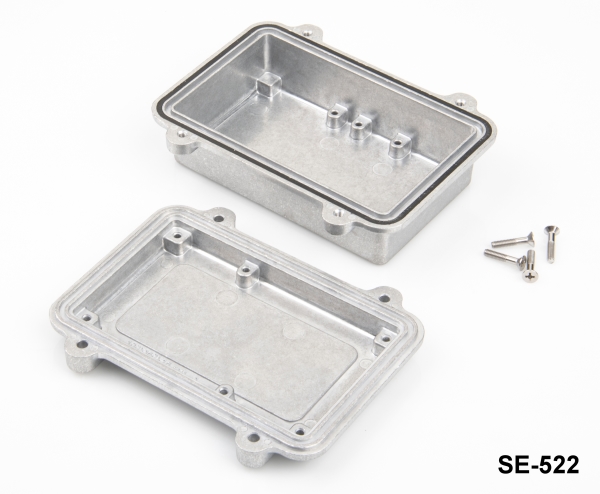 SE-522 IP67 Alüminyum Kutu, çeşitli elektronik ve elektrik uygulamalarında kullanılmak üzere tasarlanmış yüksek kaliteli, döküm alüminyum kutudur. 150 mm x 100 mm x 50 mm boyutlarıyla bu kutu, basınç vericileri, sismograflar, gömülü sistemler ve amplifikatörlerle kullanıma çok uygundur. SE-522,  biri su geçirmezlik, diğeri ise EMI conta için çift kanala sahiptir. EMI contanın ayrıca sipariş edilmesi gerekmektedir.