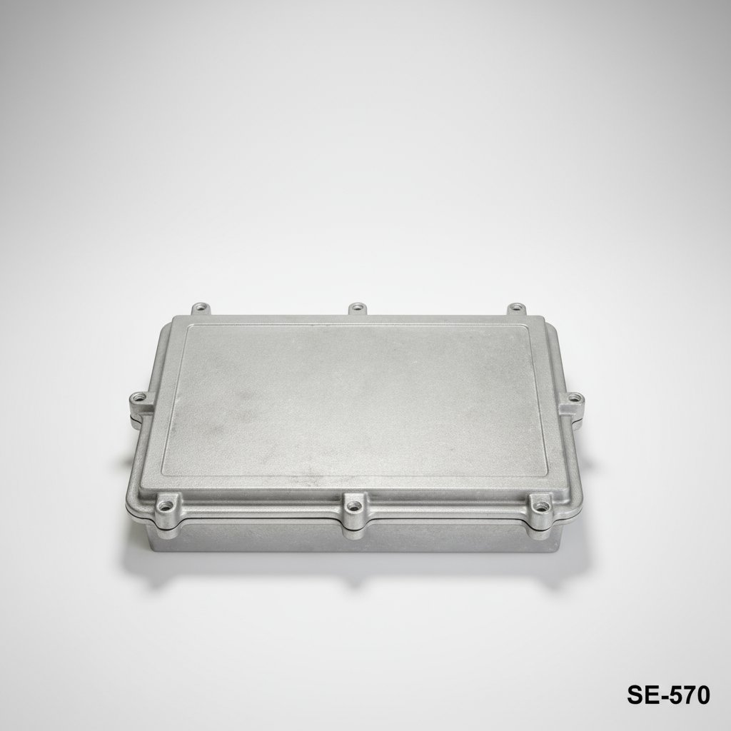 SE-570 IP67 Alüminyum Kutu, çeşitli elektronik ve elektrik uygulamalarında kullanılmak üzere tasarlanmış yüksek kaliteli, döküm alüminyum kutudur. 262 mm x 182 mm x 55 mm boyutlarıyla bu kutu, basınç vericileri, sismograflar, gömülü sistemler ve amplifikatörlerle kullanıma çok uygundur. SE-570,  biri su geçirmezlik, diğeri ise EMI conta için çift kanala sahiptir. EMI contanın ayrıca sipariş edilmesi gerekmektedir.