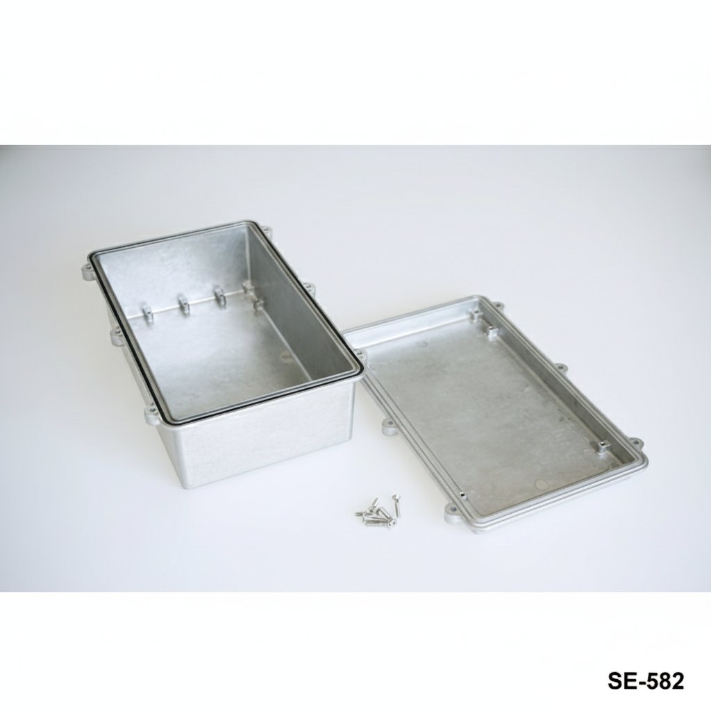 SE-582 IP67 Alüminyum Kutu, çeşitli elektronik ve elektrik uygulamalarında kullanılmak üzere tasarlanmış yüksek kaliteli, döküm alüminyum kutudur. 274 mm x 173 mm x 100 mm boyutlarıyla bu kutu, basınç vericileri, sismograflar, gömülü sistemler ve amplifikatörlerle kullanıma çok uygundur. SE-582,  biri su geçirmezlik, diğeri ise EMI conta için çift kanala sahiptir. EMI contanın ayrıca sipariş edilmesi gerekmektedir.
