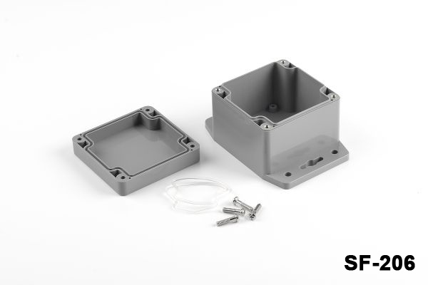 SF-206, IP67 sertifikasına sahip montaj ayaklı contalı bir kutudur. Su geçirmez ve toz geçirmez özellikleri ile dış mekan uygulamalarına uygundur.