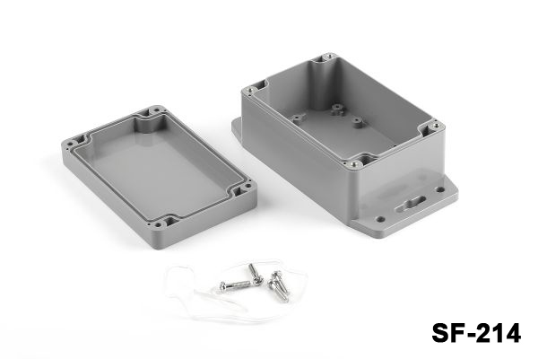 SF-214, IP67 sertifikasına sahip montaj ayaklı contalı bir kutudur. Su geçirmez ve toz geçirmez özellikleri ile dış mekan uygulamalarına uygundur. Vida delikli montaj ayakları duvara kolay montaj yapmanızı sağlar.  Ürün ABS malzemeden üretilmiştir. PC malzemeli şeffaf kapak opsiyoneldir. Flanşlar yüzeylere montajı kolaylaştırır. Yüksek seviyede koruma gerektiren gömülü sistemler, transmiterler, barometreler, gaz ve nem sensörleri, sıcaklık kontrolü ve ölçüm uygulamaları için ideal bir seçimdir. Dış mekan uygulamaları için güneşe maruz kalmaya dayanıklı ASA malzeme ile üretim de mümkündür.