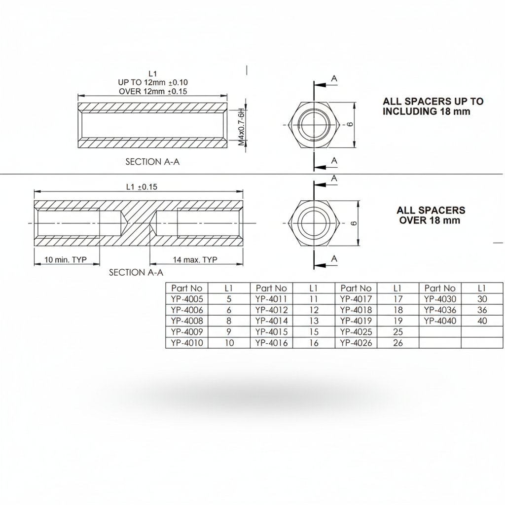 YP-4000 M4 Dişi / Dişi Pirinç Yükseltme Parçası