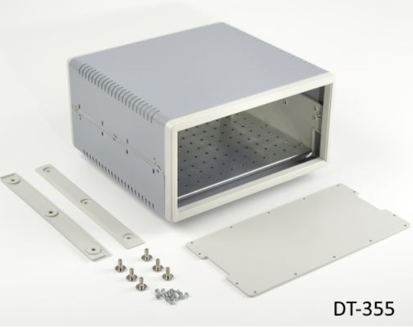 DT-355 台式外壳是一种多功能、耐用、抗冲击的解决方案,由 ABS-UL94-HB 和金属板材料组合而成,适用于包括医疗设备在内的各种桌面应用。