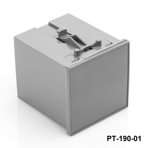 PT-190-01 DIN 面板外壳由浅灰色或黑色的优质 ABS 塑料制成,尺寸为 72 mm x 72 mm x 81 mm。它配有机身、框架、面板和侧夹,便于安装。有关定制和数量详情,请联系我们的国际销售团队。