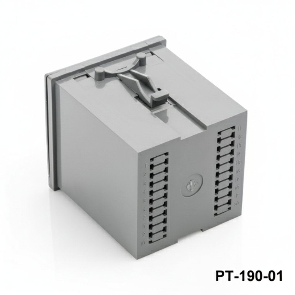 PT-190-01 DIN 面板外壳由浅灰色或黑色的优质 ABS 塑料制成,尺寸为 72 mm x 72 mm x 81 mm。它配有机身、框架、面板和侧夹,便于安装。有关定制和数量详情,请联系我们的国际销售团队。