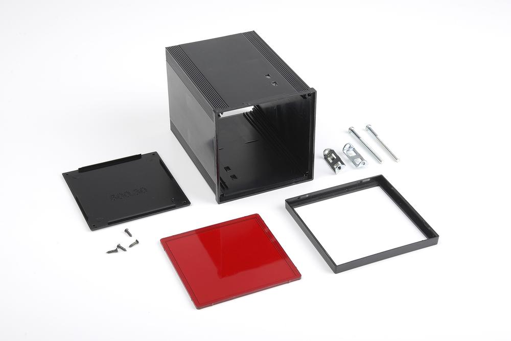 PT-260 DIN 面板外壳由浅灰色或黑色的优质 ABS 塑料制成,尺寸为 96 mm x 96 mm x 135 mm。它配有机身、框架、面板和侧夹,便于安装。有关定制和数量详情,请联系我们的国际销售团队。